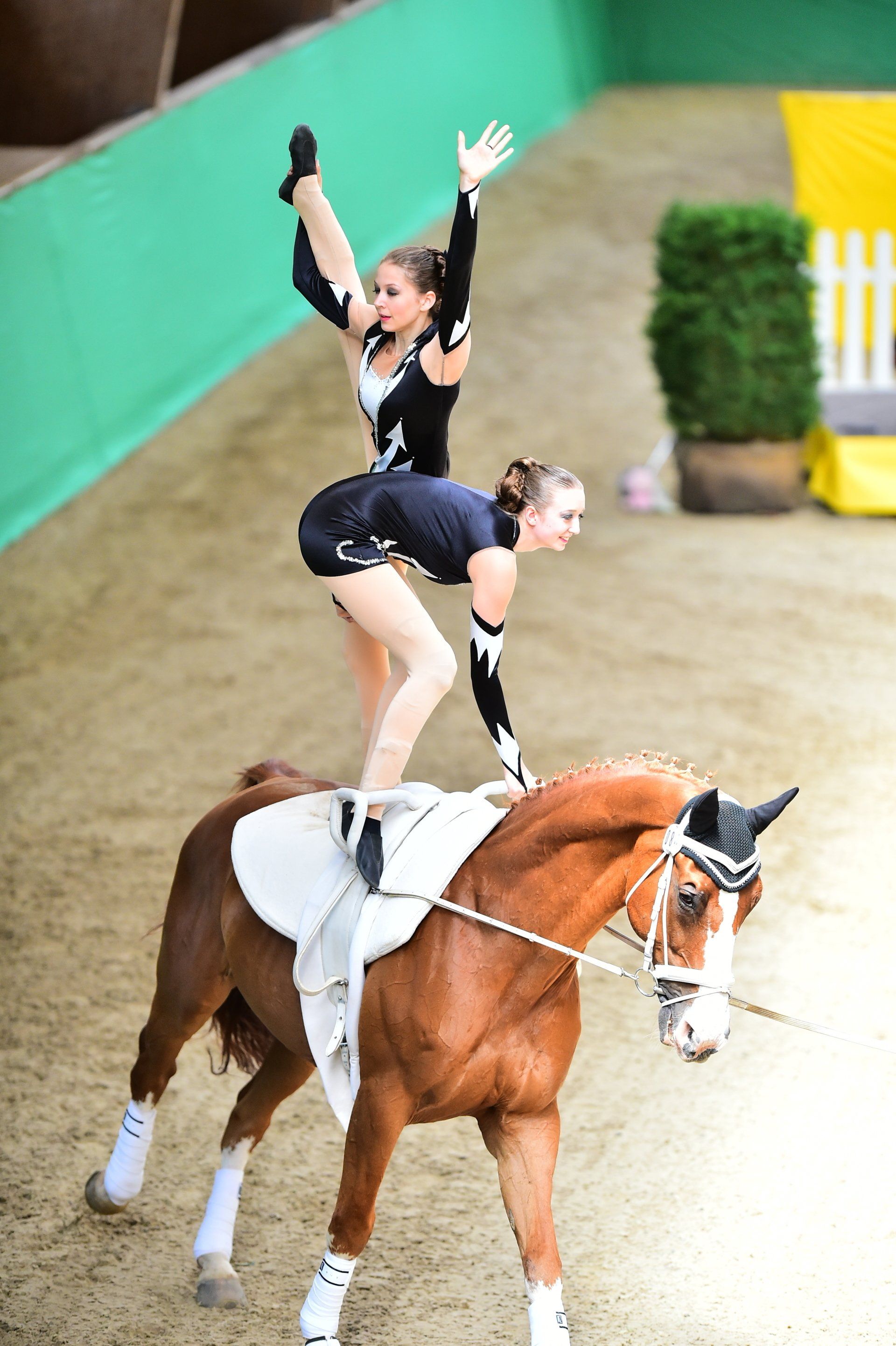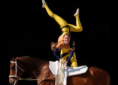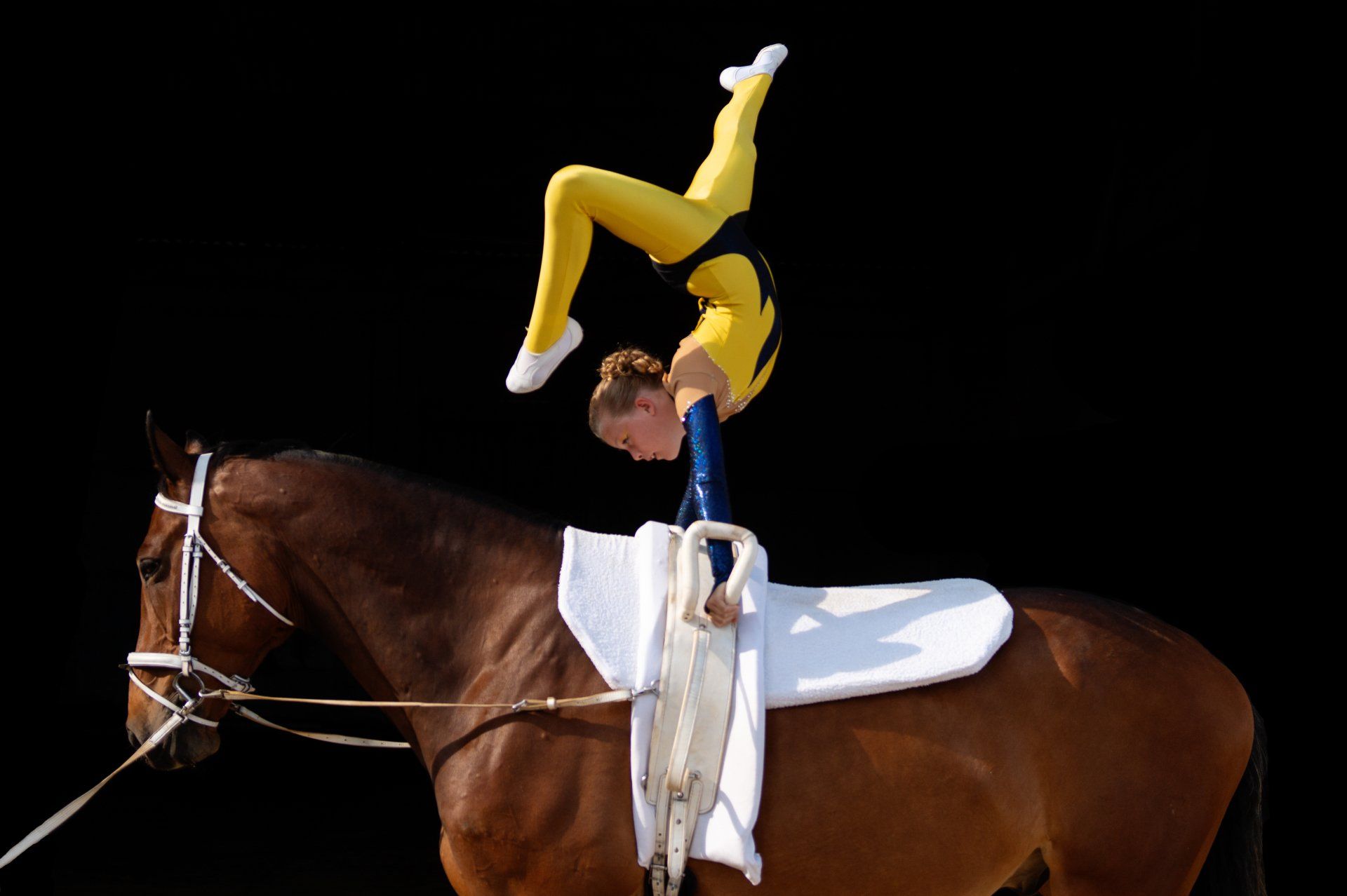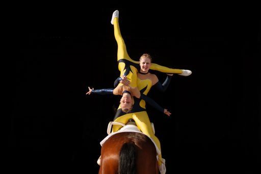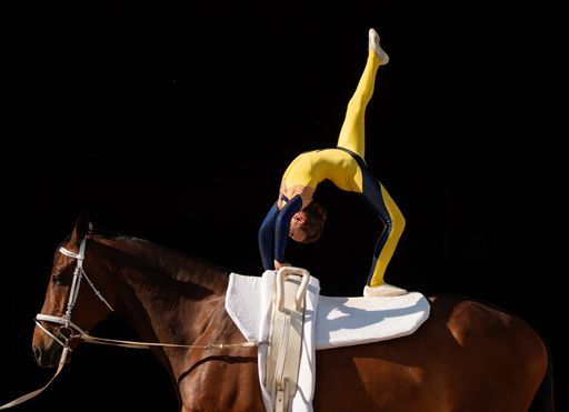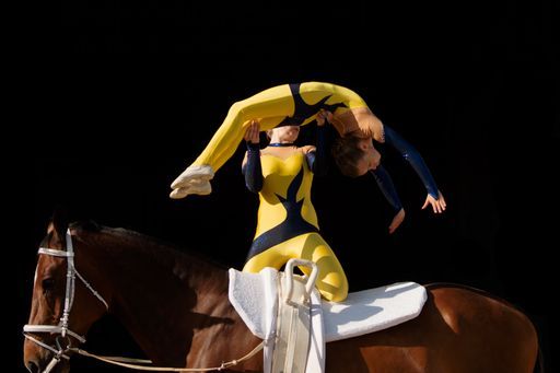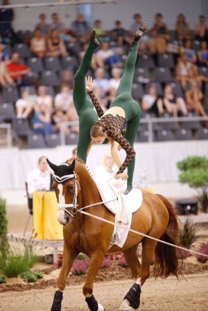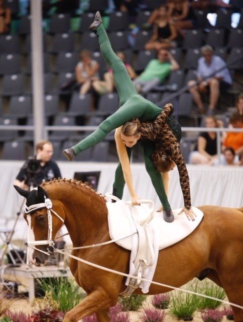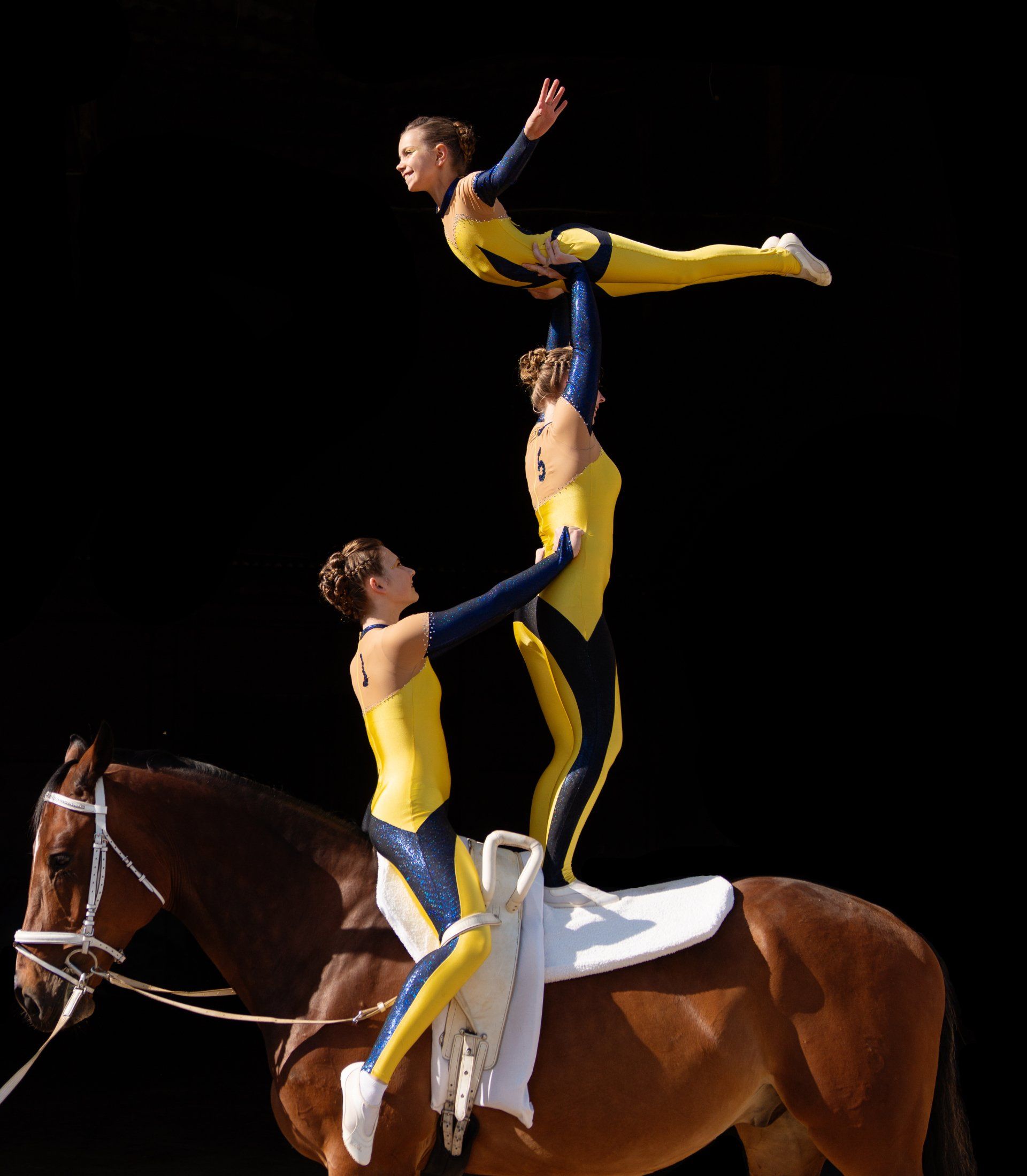 Einzigartig und exklusiv, sehen Sie eine Mischung aus Tanz, Akrobatik, Dressur und als Highlight, eine wunderschön geturnte Kür auf dem galoppierenden Pferd.
