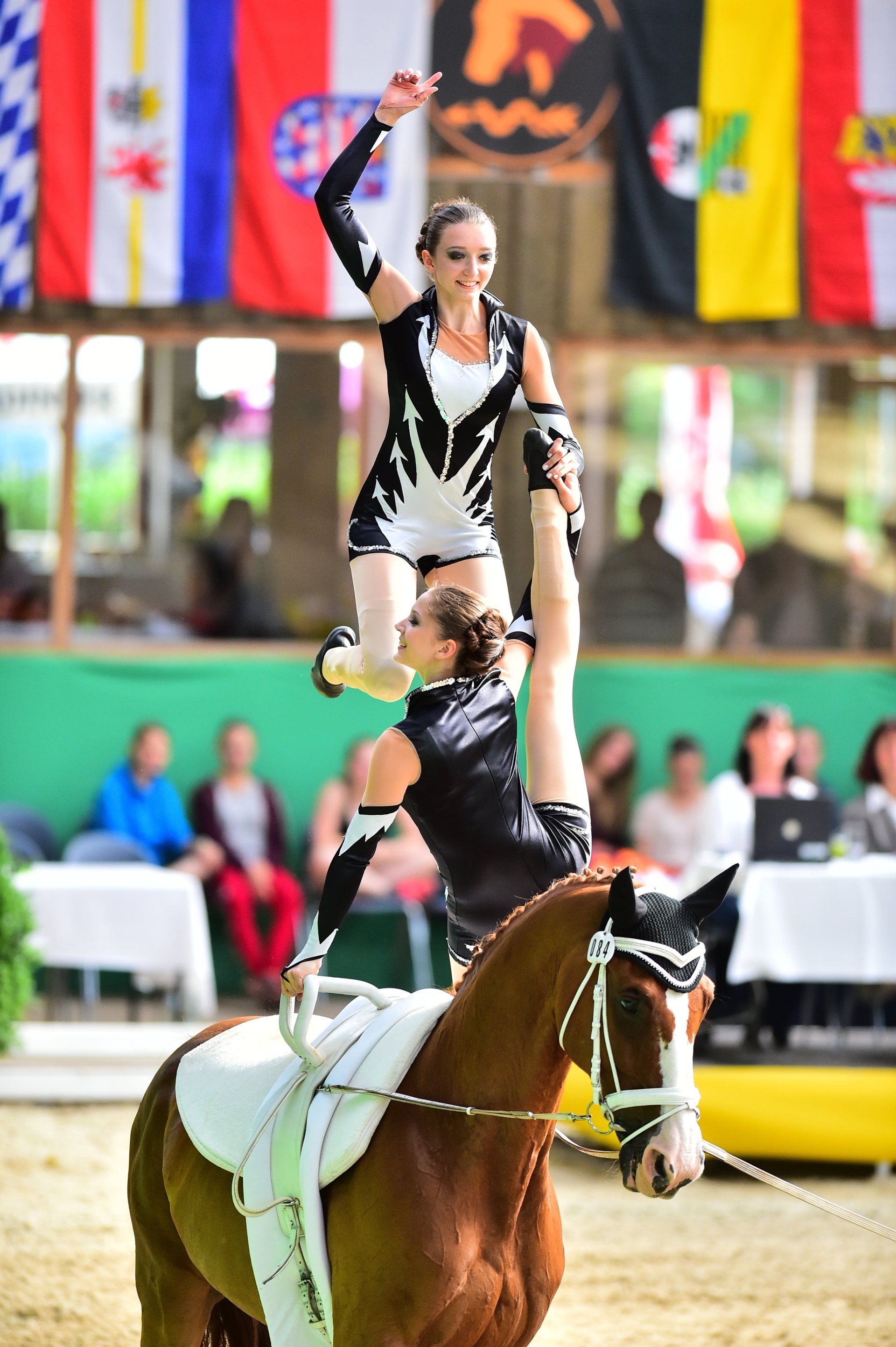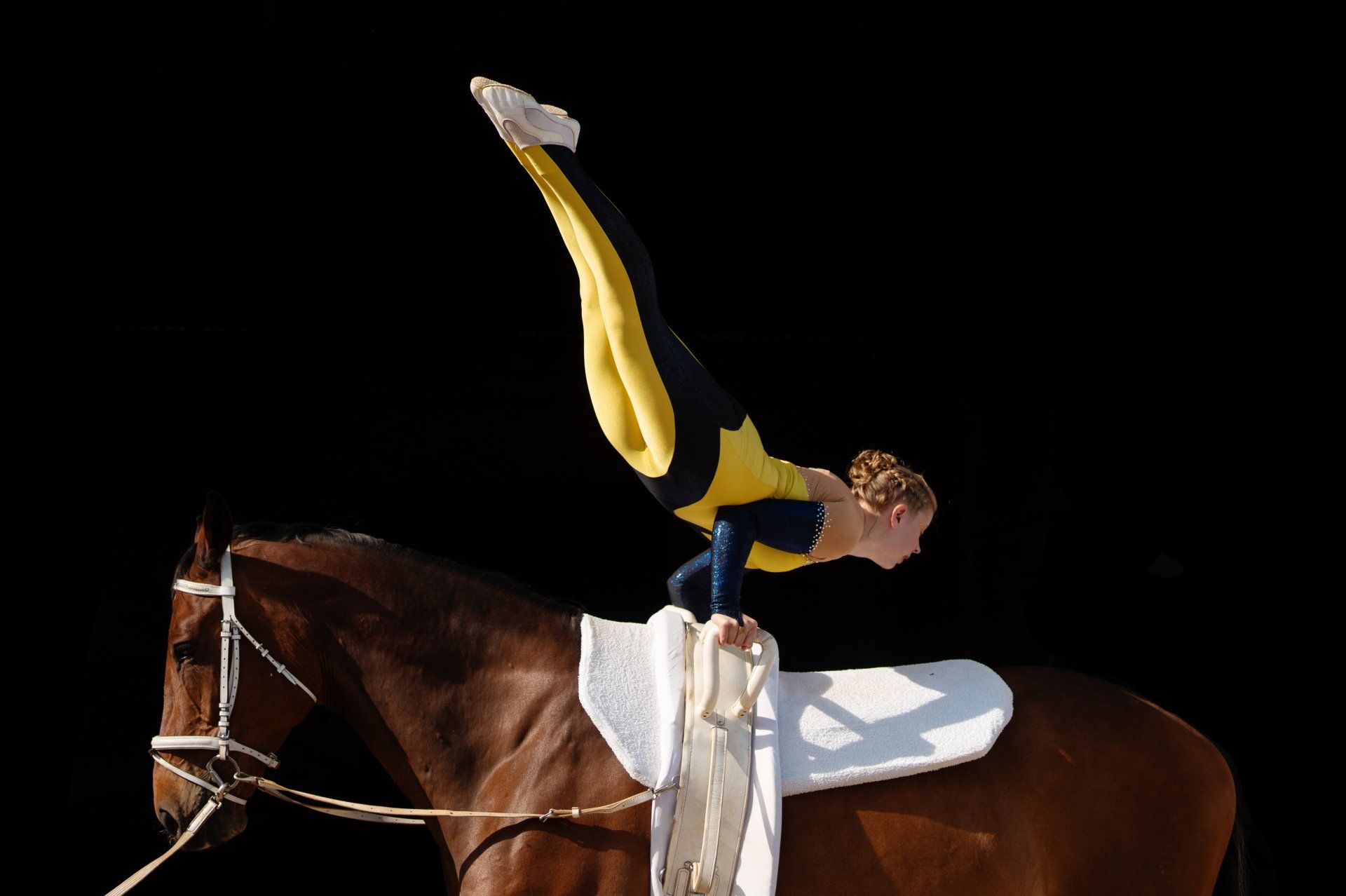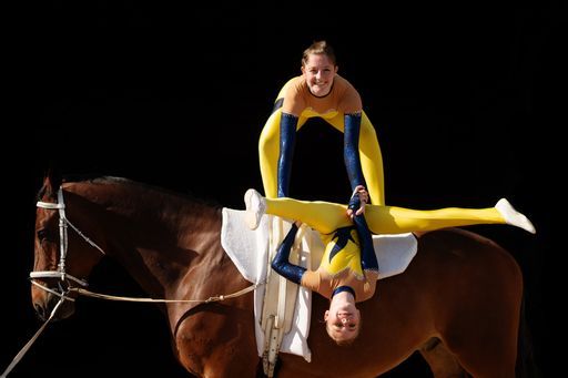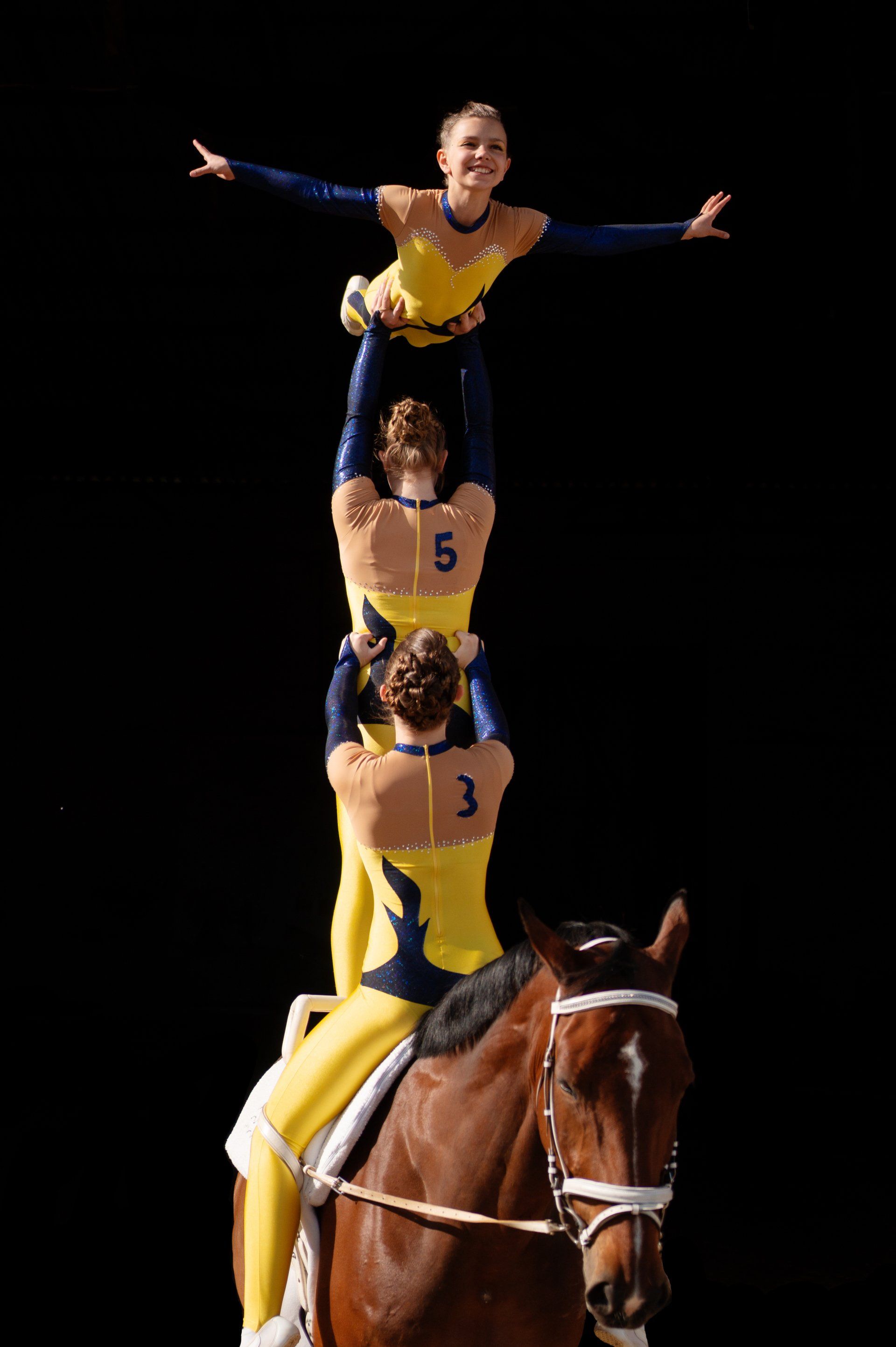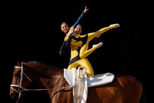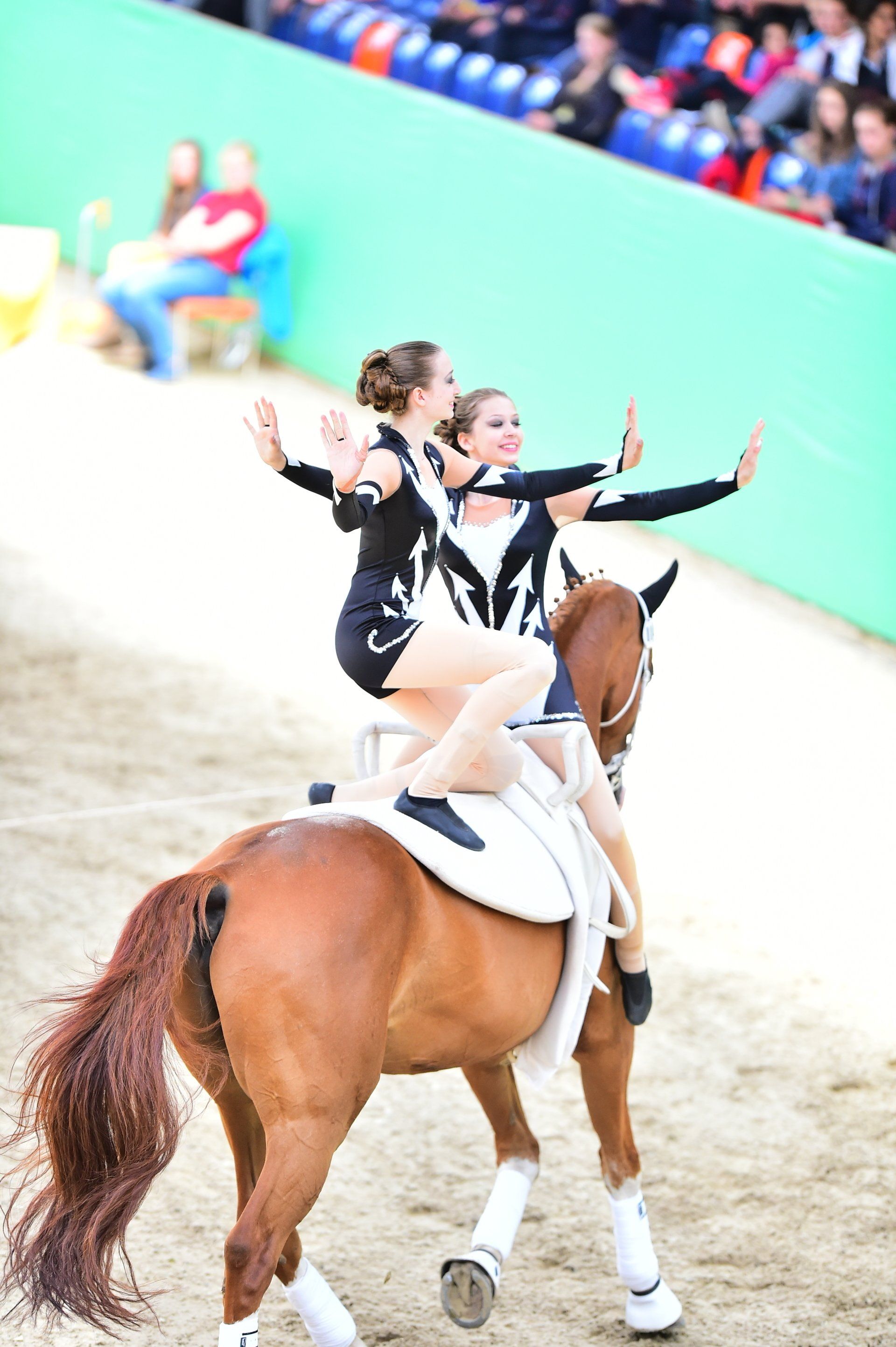 Einzigartig und exklusiv, sehen Sie eine Mischung aus Tanz, Akrobatik, Dressur und als Highlight, eine wunderschön geturnte Kür auf dem galoppierenden Pferd.